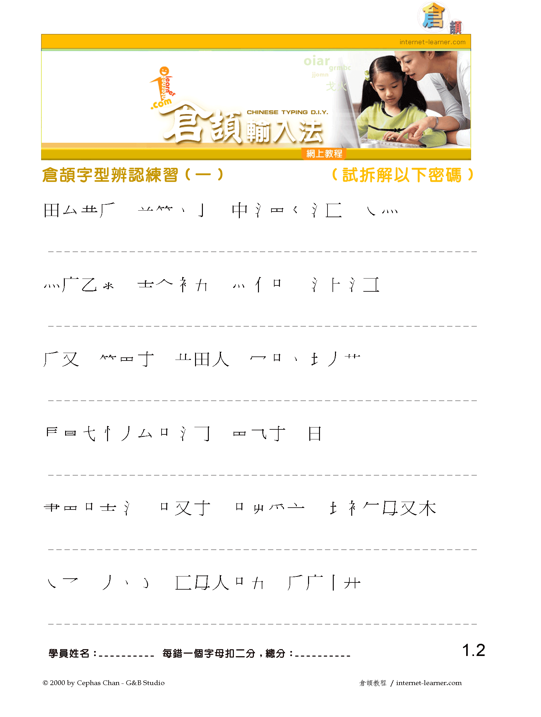 倉頡教程筆記,二零零一年一月第二版,編者陳老師