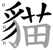「貓」字的字首是 BH 而不是 BS ,雖然 S 比 H 貼近底線,但按著上至下的次序,S 的上方比兩個 H 都高,所以 S 排序較先,並非「尾」碼。